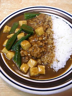 納豆カレーにオクラと豆腐トッピング!粘るぜ!
